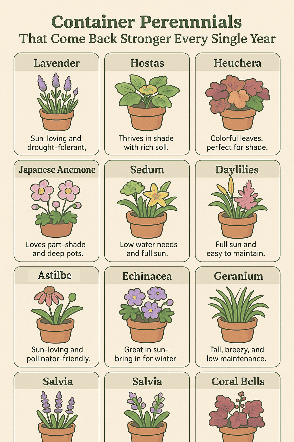 Your containers are trying to tell you something important: they want plants that work as hard as coral bells do, providing color and interest from spring through fall without the drama.