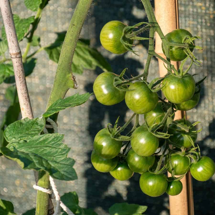 - For vining tomatoes, tie them to sturdy stakes weekly as they grow. Don’t wait until they’re flopping over; prevention is key!